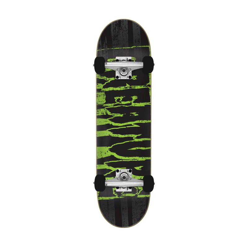 The Creature Tattered Large Complete is 8.25" x 31.5" with a 14" wheelbase and features high quality components: 7ply deck, Krux DLK Trucks, OJ 53mm 95a wheels and Abec 3 bearings. Fully gripped and ready to rip.