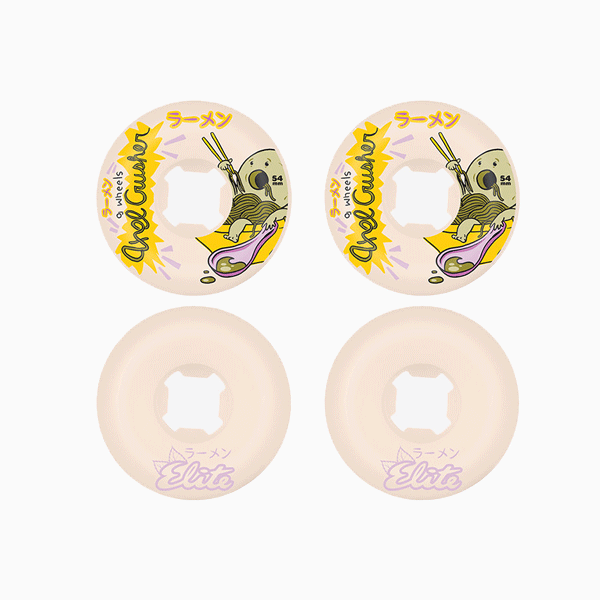 OJ Wheels Axel Cruysberghs Ramen Elite Mini Combo 54mm 101a. Elite Urethane equals more speed, a longer lasting roll, and hands down epic times with your crew. Mini-Combo shapes feature a wide road surface for stability and consistent slide and asymmetrical shape cut with a round back and conical front for customizing your set up.